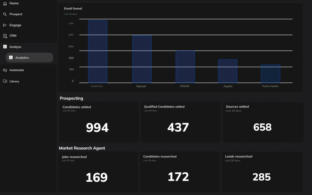 Empower your team with AI agents for autonomous candidate outreach via email, LinkedIn, and other channels.